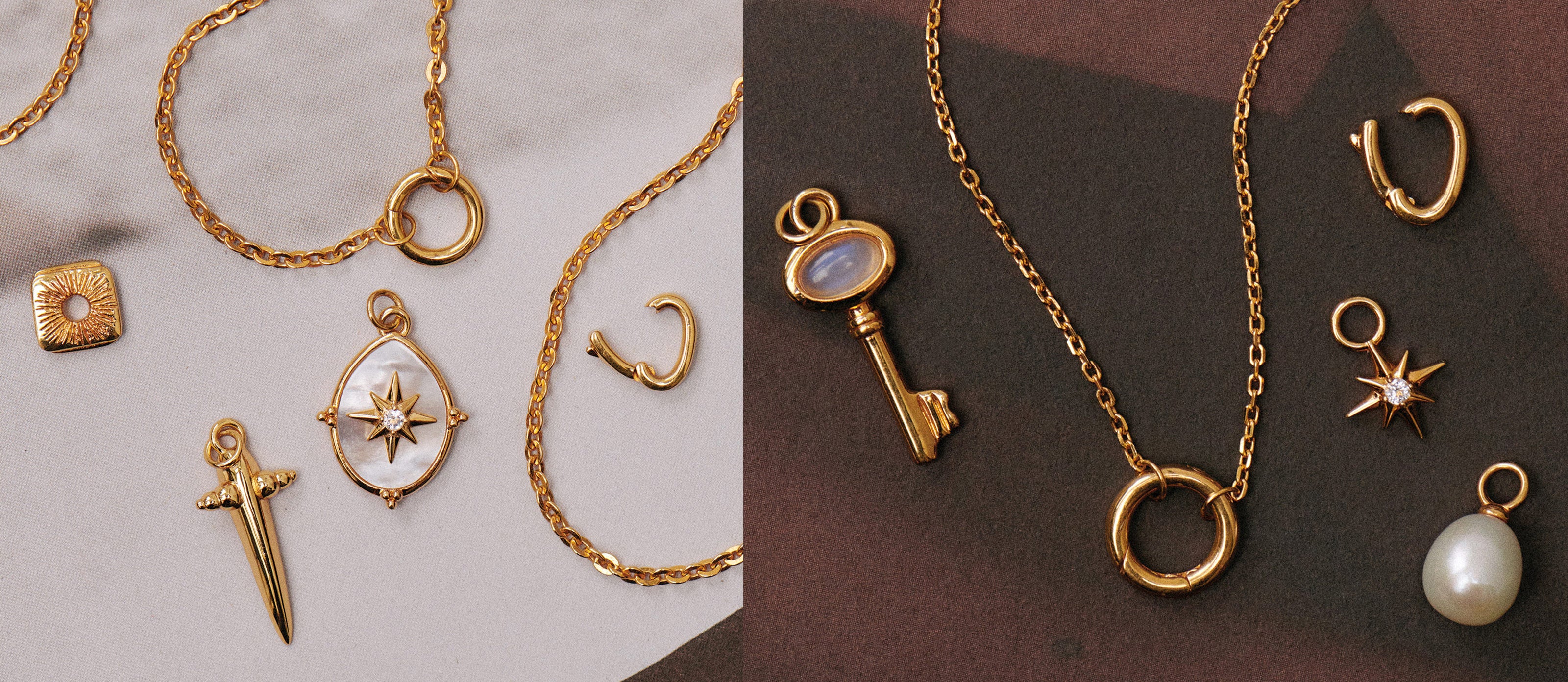 Discover how to create your own personalised jewellery piece with our combination of unique pendants and charms.Mix and match them on our earrings, necklaces or bracelets thanks to our unique clasp connector and start telling your own story, that can evolve with you.