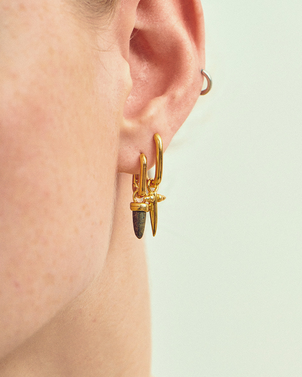 Crafted with a natural hematite stone, this bullet charm represents strength and power. A modern twist on the horn symbol, it represents strength and protection, like the animal’s weapon.