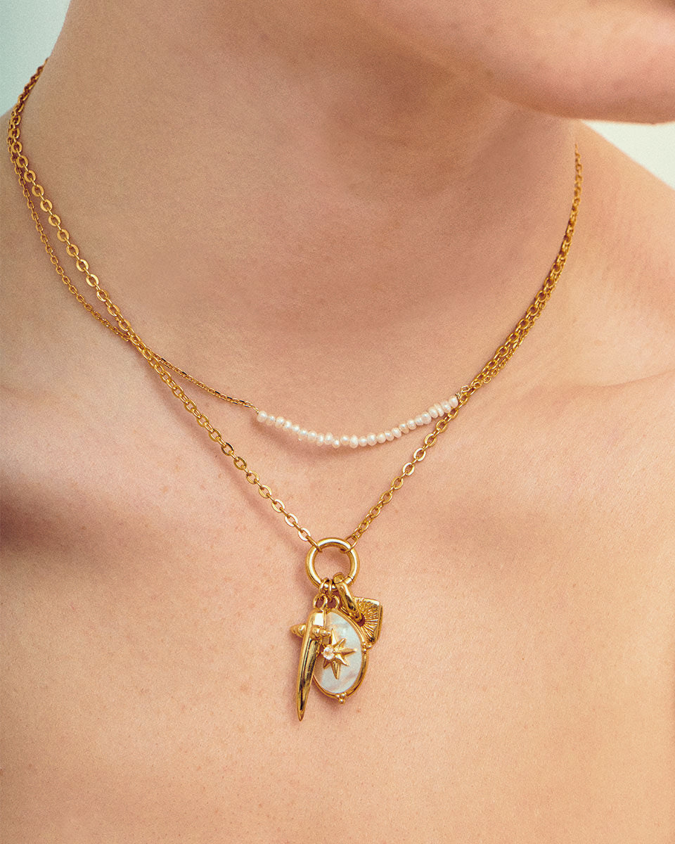 Crafted with a mother of pearl, our Rose des Vents pendant represents endless opportunities. With its design based on the compass rose, it symbolises spiritual direction in the present, past and future.