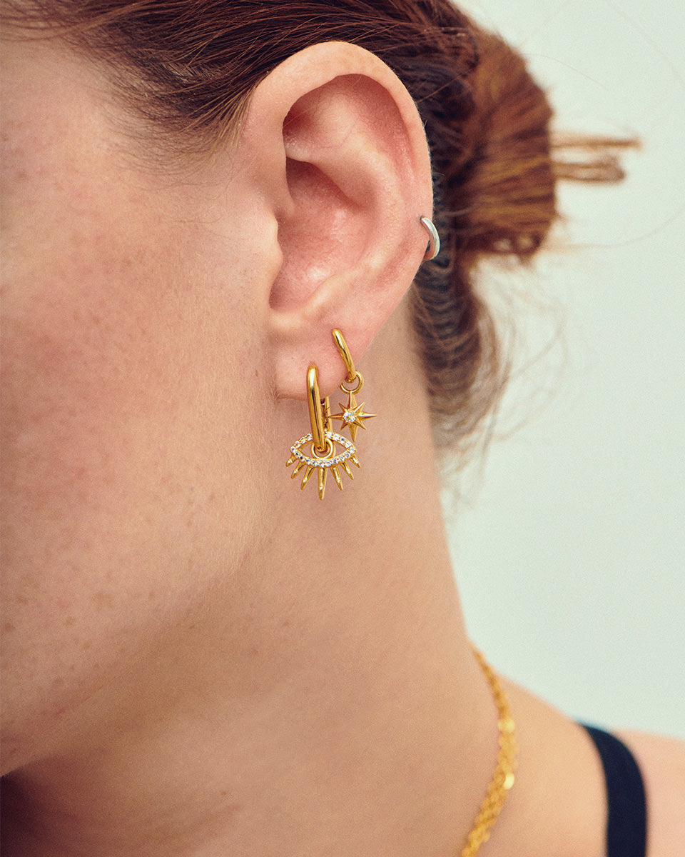 Curate your own look with these earrings. They work as a simple hoop or as a built-up personalised look. Mix and match your favourite pieces and stack them onto each hoop for a contemporary look.